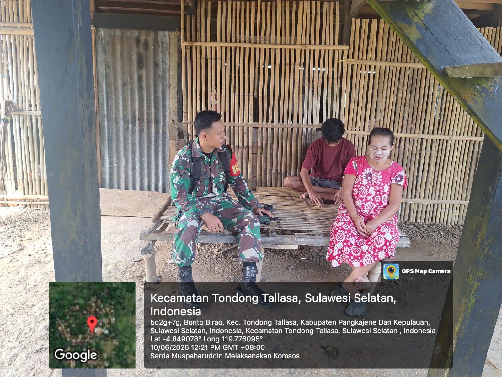 ANALISASIBER. COM. Pangkep, 9 Juni 2025 – Dalam upaya mempererat hubungan serta menjaga kondusifitas di tengah masyarakat, Babinsa Desa Tondongkura, Serda Anwar Tiwi, melaksanakan kegiatan Komunikasi Sosial (Komsos) dengan warga binaannya. Kegiatan ini berlangsung pada hari Senin, 09 Juni 2025 pukul 09.00 Wita, bertempat di kediaman Bapak Wahyu, warga Dusun Maccini Baji, Desa Tondongkura, Kecamatan Tondong Tallasa, Kabupaten Pangkep.