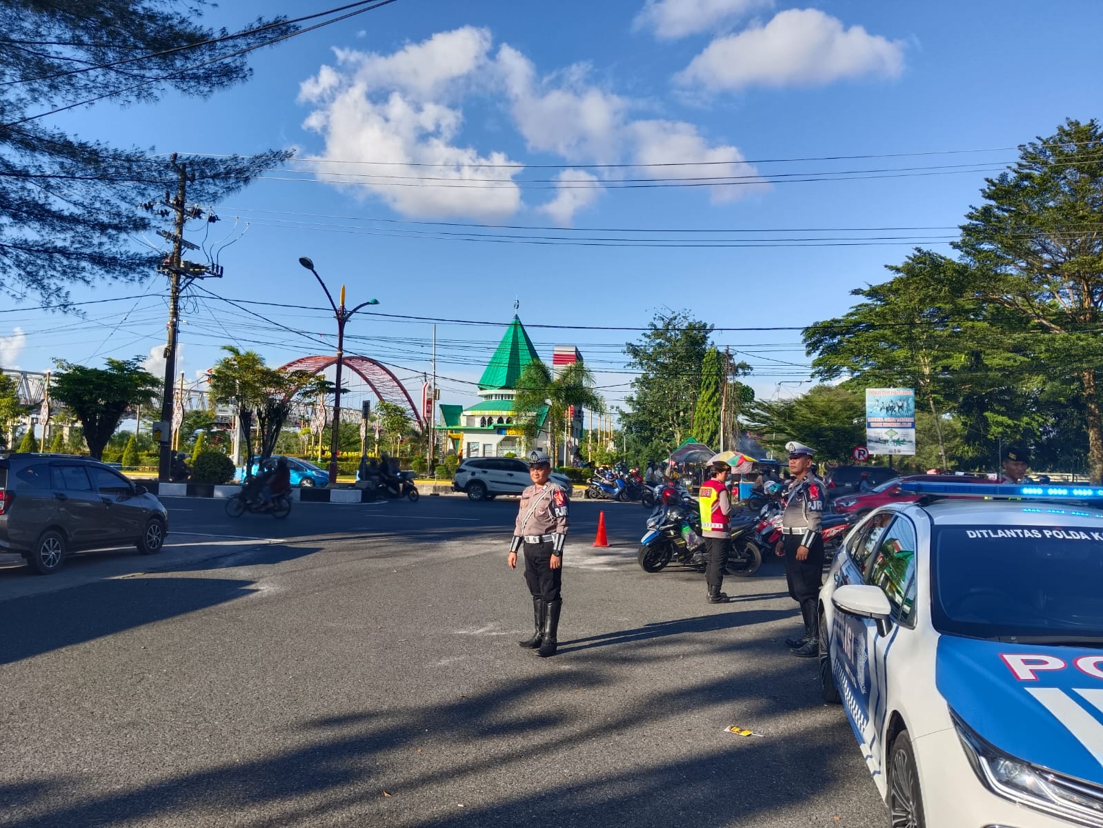 Sejumlah personel Satuan Tugas Keamanan, Keselamatan, Ketertiban, dan Kelancaran (Satgas Kamseltibcar) Ops Ketupat Telabang bertugas dengan pendekatan humanis dan profesional untuk memastikan arus lalu lintas tetap lancar serta memberikan rasa aman kepada masyarakat.