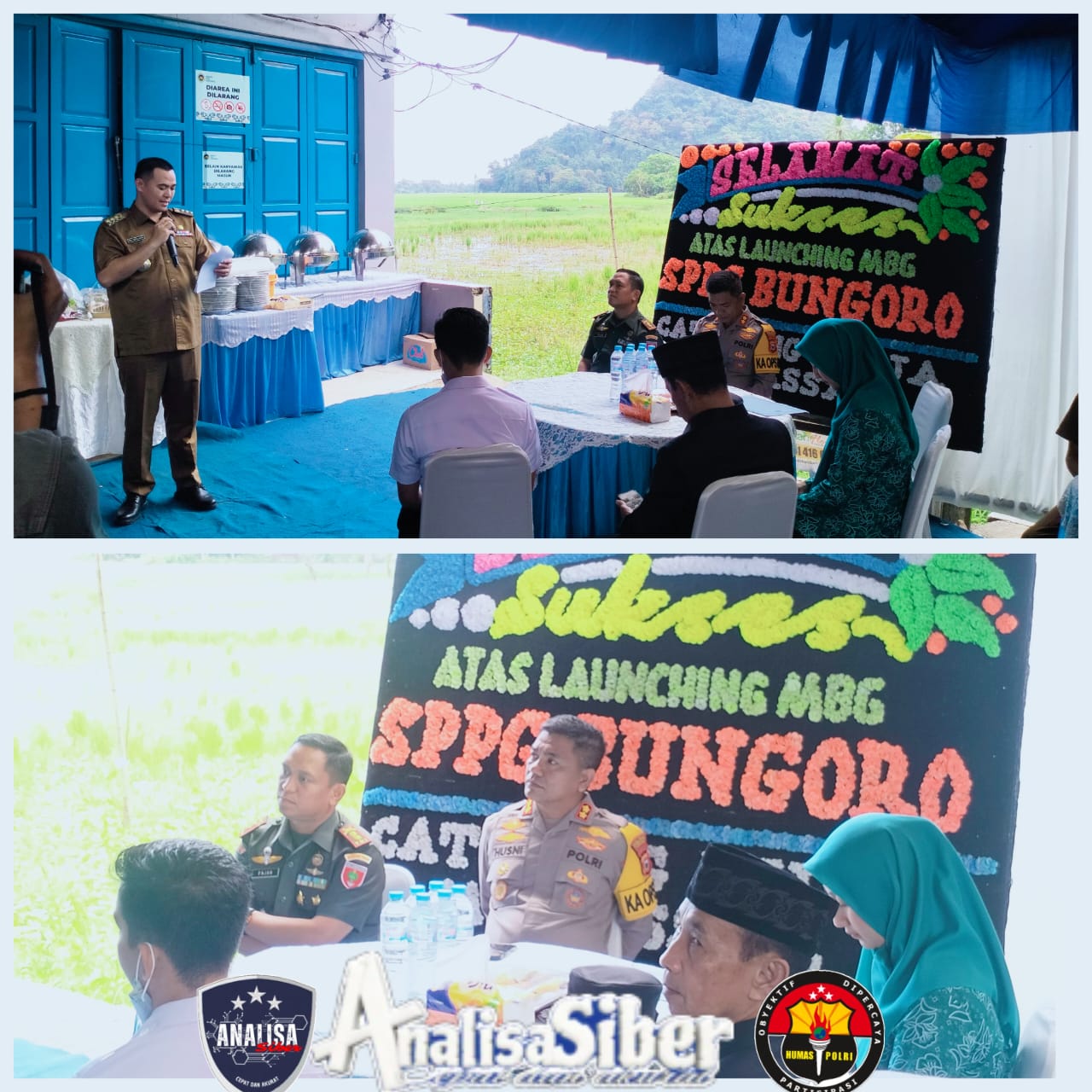 ANALISASIBER.COM. Pangkep – Kapolsek Bungoro Kompol Abdul Haris Nicolaus, S.Sos., M.H., menghadiri kegiatan Launching Program Makanan Bergizi Gratis yang digelar oleh Satuan Pemenuhan Pelayanan Gizi (SPPG) bekerja sama dengan Yayasan Jalin Sinergi Indonesia Wilayah Kecamatan Bungoro. Kegiatan ini berlangsung pada Senin, 14 Juli 2025, pukul 10.00 WITA di SPPG Bungoro Matampa, Jalan Poros Makassar – Pangkep, Kelurahan Samalewa, Kecamatan Bungoro, Kabupaten Pangkep.