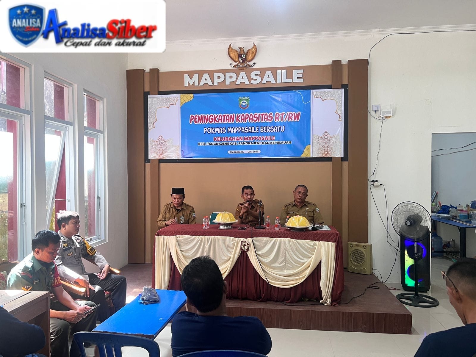 ANALISASIBER.COM. Pangkajene_ Bhabinkamtibmas Polsek Pangkajene Brigpol Adi Bangsawan bersama 3 Pilar Kelurahan Mappasaile , Babinsa Serka Asri Ahmad dan Lurah Mappasaile Muarif,S.E menghadiri kegiatan Sosialisasi Kewirausahaan yang digelar oleh pihak kelurahan Mappasaile bekerja sama dengan Pokmas Mappasaile bertempat di Aula Kelurahan Mappasaile, Kecamatan Pangkajene Kab. Pangkep, Senin 07 Juli 2025.