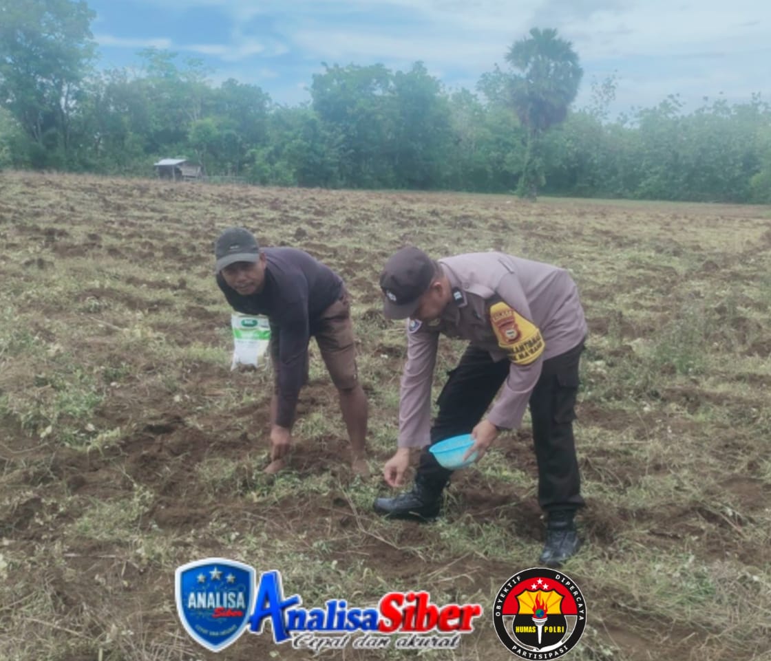 Pangkep – Di bawah terik matahari siang, semangat gotong royong tampak menyala di Kampung Sambau, Desa Padanglampe, Kecamatan Ma’rang, Kabupaten Pangkep. Bhabinkamtibmas Polsek Ma’rang Polres Pangkep, Aiptu Mufti, S.H., bersama H. Basri selaku pemilik lahan dan Kelompok Tani Bulu Sipong 1, turun langsung menanam jagung sebagai wujud nyata dukungan terhadap program ketahanan pangan nasional, Jumat (31/10/2025).