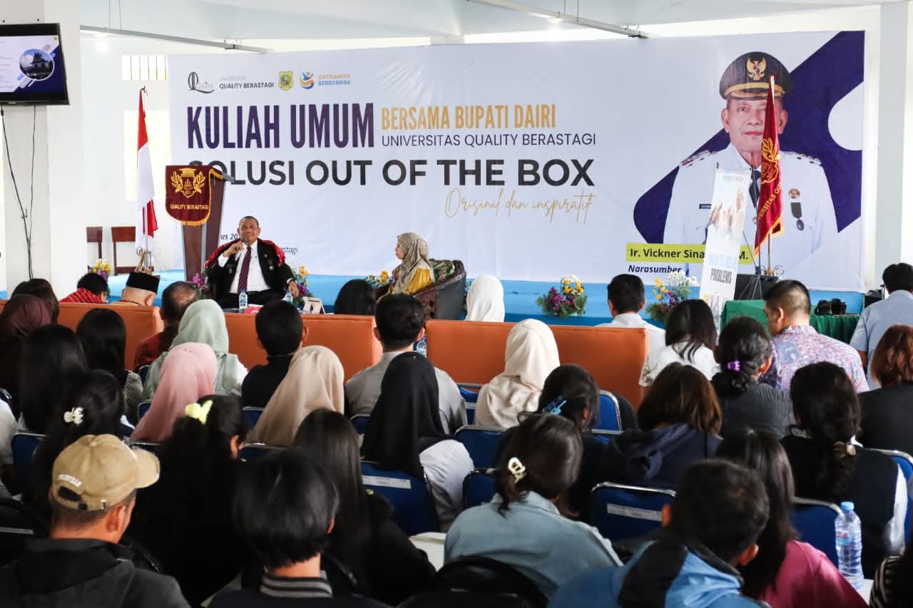 Sebelumnya, Rektor Universitas Quality Berastagi Jainal Togatorop menyampaikan rasa syukur atas kehadiran Bupati Dairi karena sosoknya sangat dikenal inspiratif.