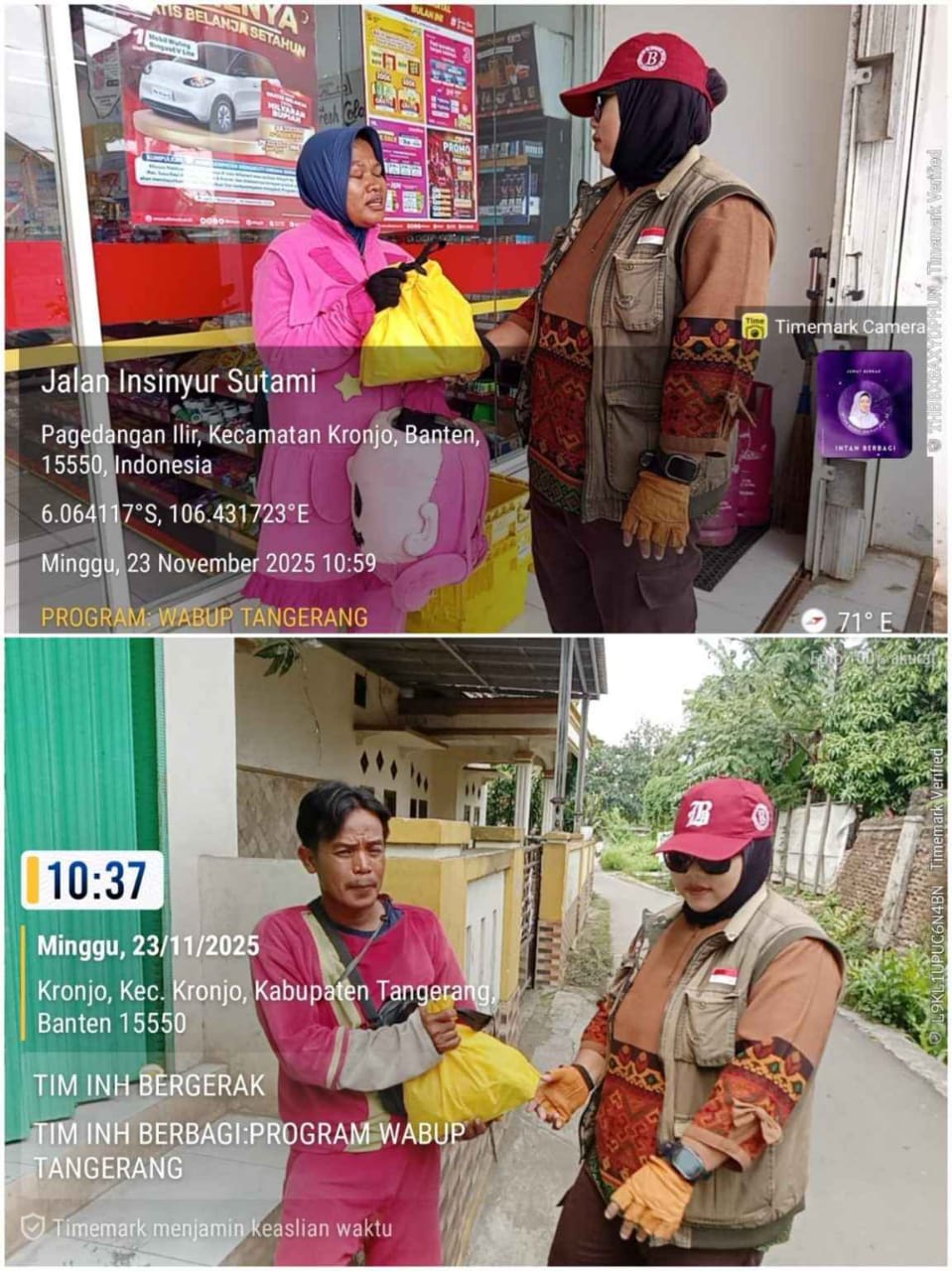 Enam relawan perempuan yang tergabung dalam Tim Intan Nurul Hikmah (INH) terus bergerak aktif menjalankan program berbagi, mulai dari menyediakan makanan gratis hingga menyalurkan paket sembako dengan cara blusukan ke berbagai titik wilayah Kecamatan Kemiri dan kecamatan kronjo Kabupaten Tangerang.Minggu.(23/11/2025).