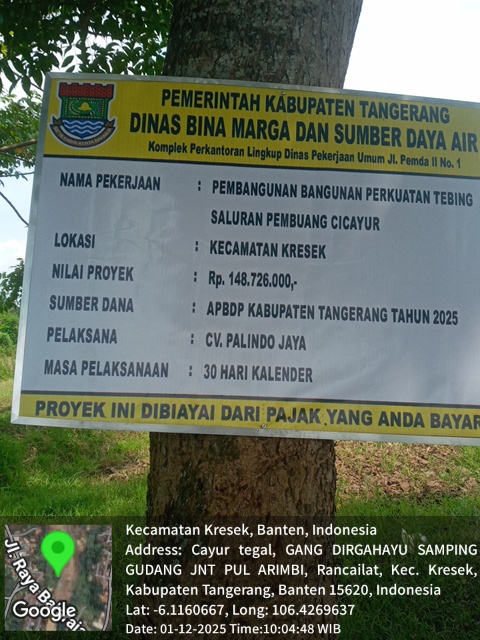 Proyek tersebut merupakan bagian dari program Pemerintah Kabupaten Tangerang melalui Dinas Bina Marga dan Sumber Daya Air, dengan menggunakan anggaran APBD-P Kabupaten Tangerang Tahun 2025. Pekerjaan difokuskan pada penguatan struktur tebing saluran pembuang guna mencegah erosi, menjaga kestabilan tanah, serta memperlancar aliran air—terutama dalam menghadapi potensi curah hujan tinggi pada musim penghujan.