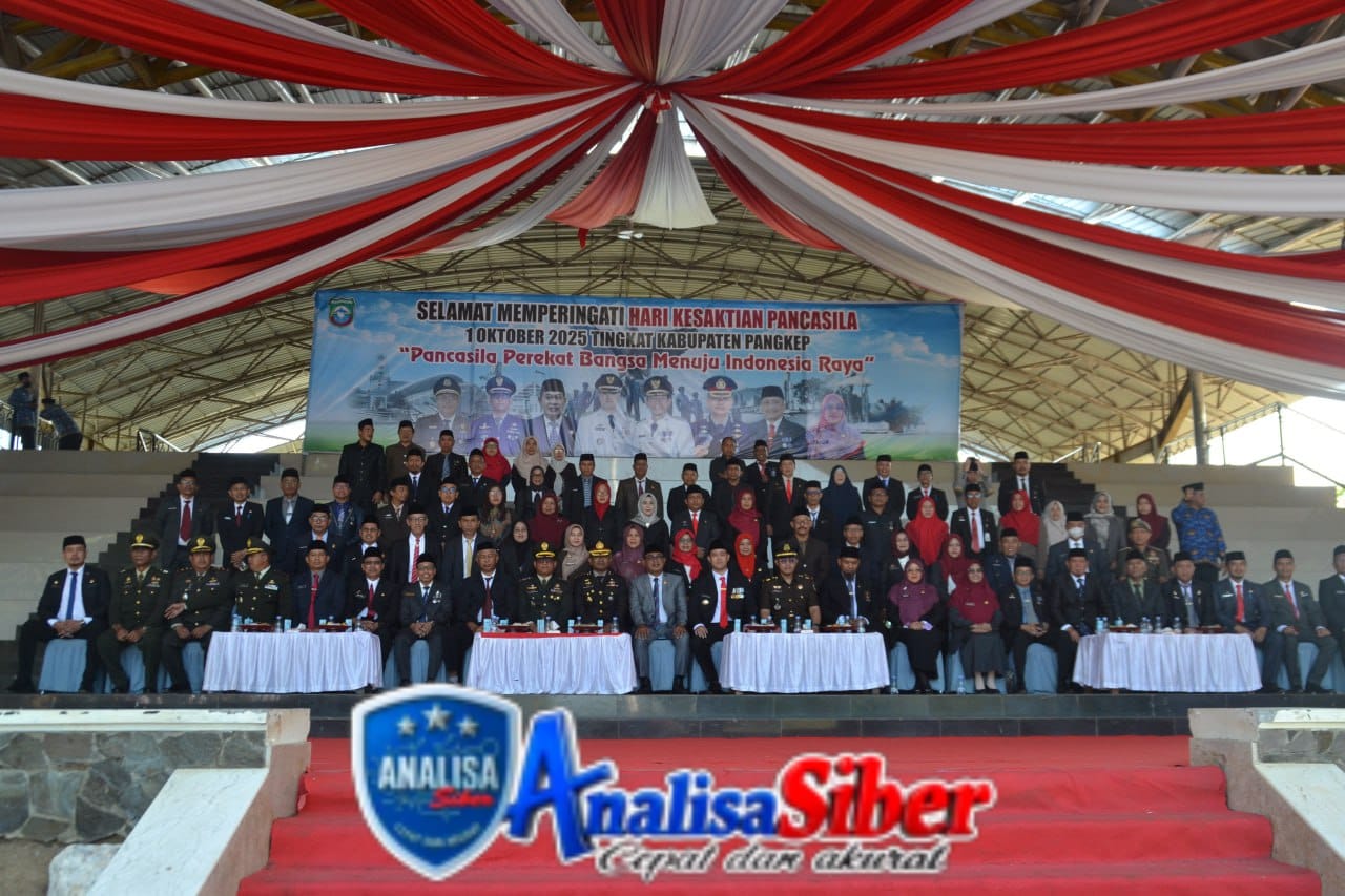 ANALISASIBER. COM. Pangkep – Dalam rangka memperingati Hari Kesaktian Pancasila Tahun 2025, Dandim 1421/Pangkep Letkol Inf Fajar bersama unsur Forkopimda Kabupaten Pangkep mengikuti upacara yang digelar di Lapangan Tribun Citra Mas Pangkep, Rabu (01/10/2025).