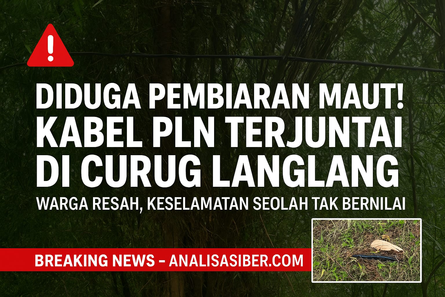 PANDEGLANG – analisasiber.com – Keselamatan warga Desa Curug Langlang, Kecamatan Munjul, Kabupaten Pandeglang, kini seolah dipertaruhkan akibat kabel listrik PLN yang dibiarkan terjuntai di tanah. Kondisi kabel tersebut kian memprihatinkan karena sebagian tertimbun tanah dan rerumputan, sementara sebagian lainnya hanya ditopang batang pohon dan bambu. Parahnya lagi, posisinya berada di pinggir jalan yang setiap hari dilalui kendaraan maupun pejalan kaki.
