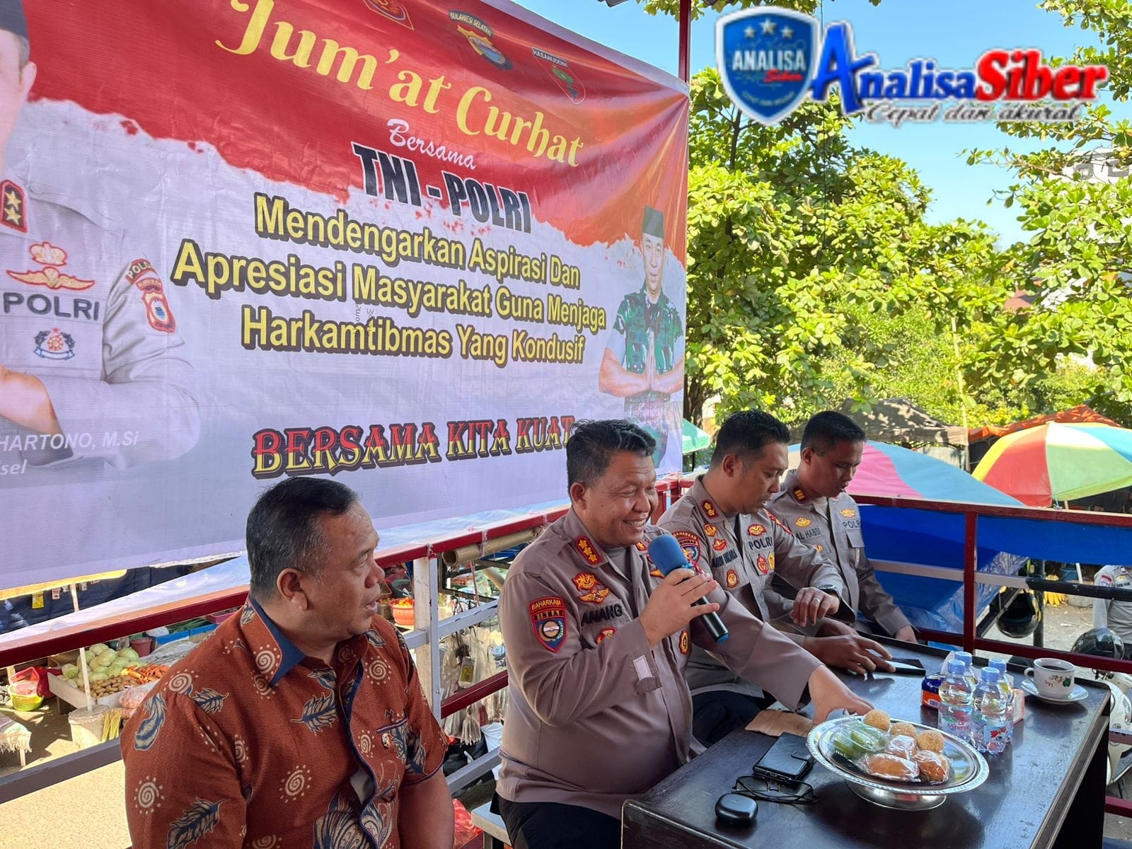 ANALISASIBER. COM. GOWA, — Dirbinmas Polda Sulsel, Kombespol Anang Triarsono, SIK, M, si menghadiri sosialisasi dan edukasi problem solving melalui metode Abbulo Sibatang, pada saat acara jumat curhat di Pasar Sungguminasa, Jumat (3/10/2025).