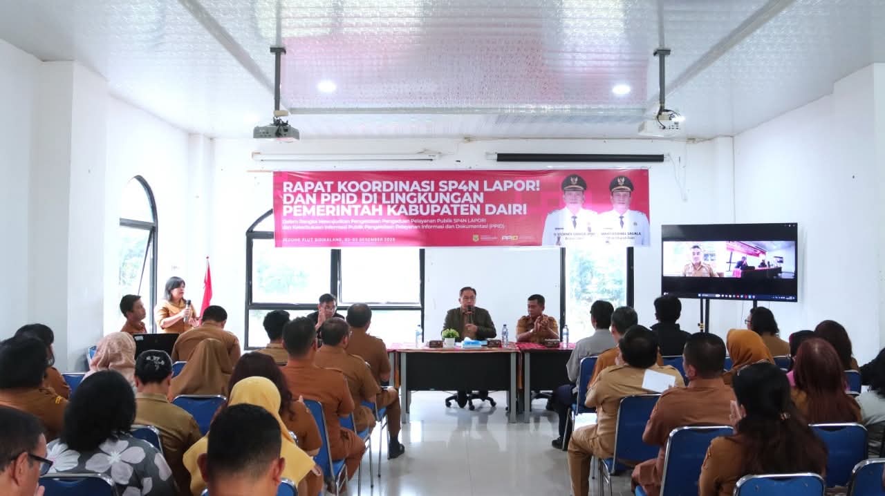 Sidikalang, Dairi (Sumut), analisasiber.com – Pemerintah Kabupaten Dairi melalui Dinas Komunikasi dan Informatika mengadakan Rapat Koordinasi (Rakor) Sistem Pengelolaan Pengaduan Pelayanan Publik Nasional (SP4N) Lapor! dan Pejabat Pengelola Informasi dan Dokumentasi (PPID) di lingkungan Pemkab Dairi, Selasa (02/12/2025) di Gedung PLUT, Taman Rekreasi Sidikalang.