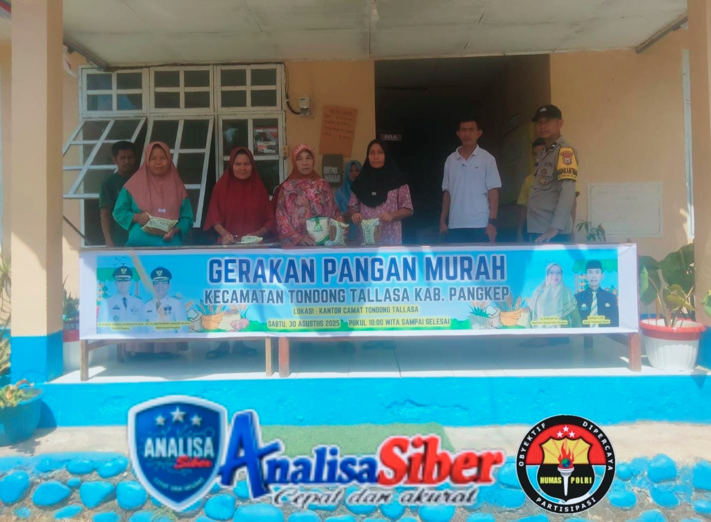 ANALISASIBER.COM. Tondong Tallasa — Bertempat di Kantor Kecamatan tondong tallasa kab.Pangkep berlangsung giat serentak gerakan pangan murah tingkat kabupaten pangkep dan termasuk wilayah kecamatan tondong tallasa Bhabinkamtibmas Polsek Tondong Tallasa Aipda Saiful H. laksanakan monitoring pada giat tersebut.