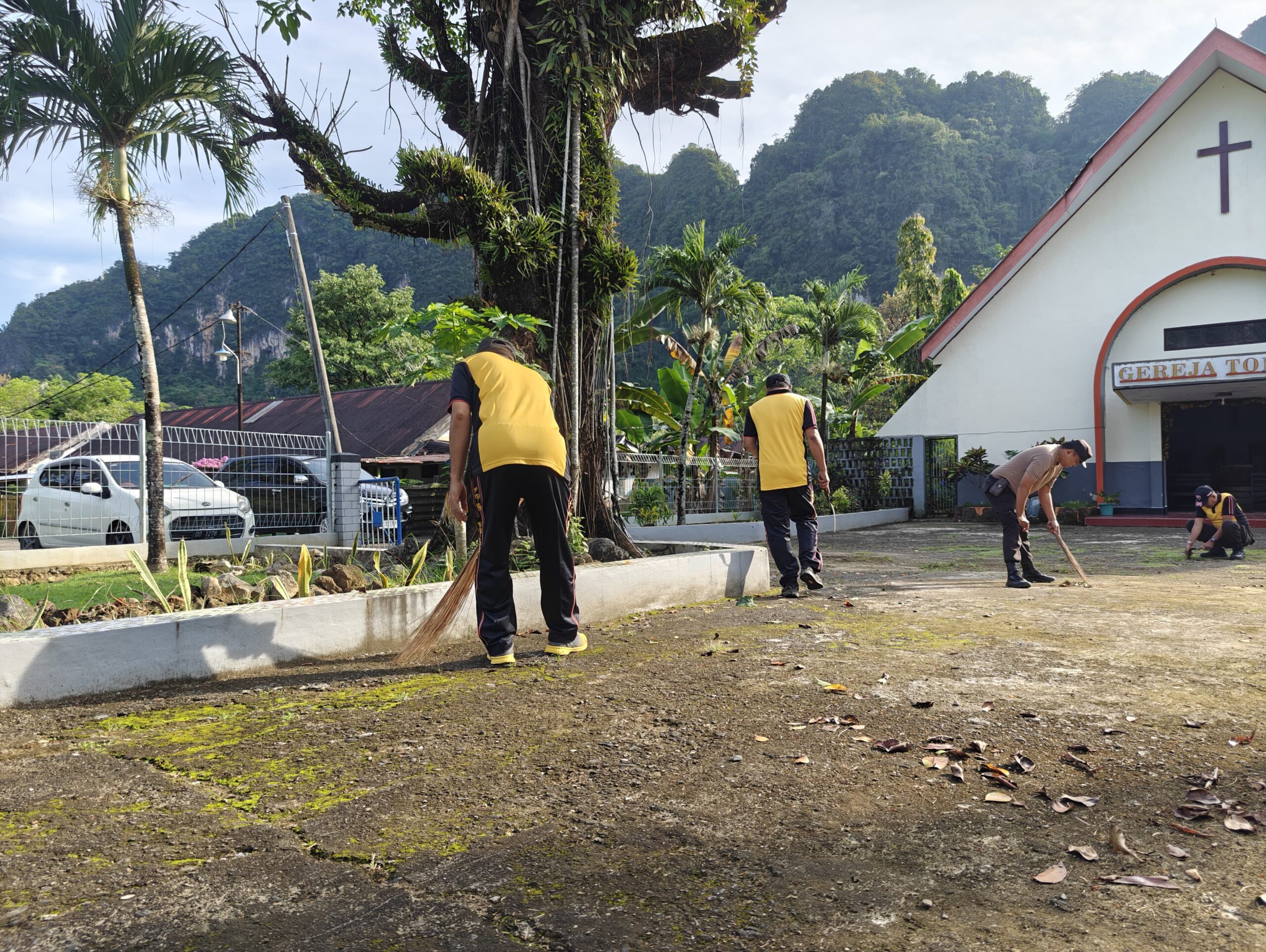 Dalam kegiatan tersebut, personel Polsek Balocci bersama pengurus gereja melaksanakan kerja bakti dengan membersihkan area dalam dan sekitar rumah ibadah, termasuk halaman, ruang ibadah, dan fasilitas umum lainnya. Tujuannya adalah untuk menjaga kebersihan dan kenyamanan lingkungan tempat ibadah, serta mempererat tali silaturahmi antara Polri dan masyarakat lintas agama.