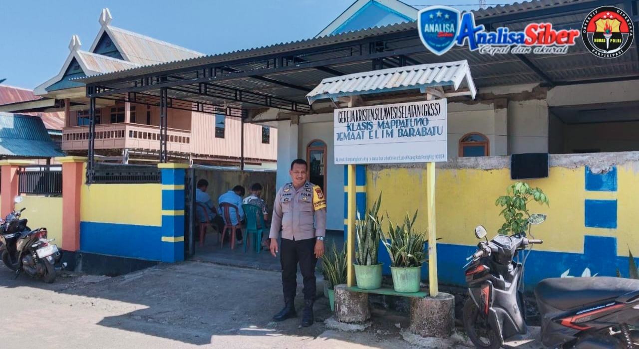 ANALISASIBER.COM. Labakkang – Minggu , 31 Agustus 2025, Pukul 10.00 Wita bhabinkamtibmas Polsek Labakkang Aipda Hamri melaksanakan Pam giat ibadah Rutin Jemaat Elim Bara Batu di Gereja Elim Bara Batu Kampung Baru Desa Bara Batu Kec. Labakkang Kab. Pangkep.