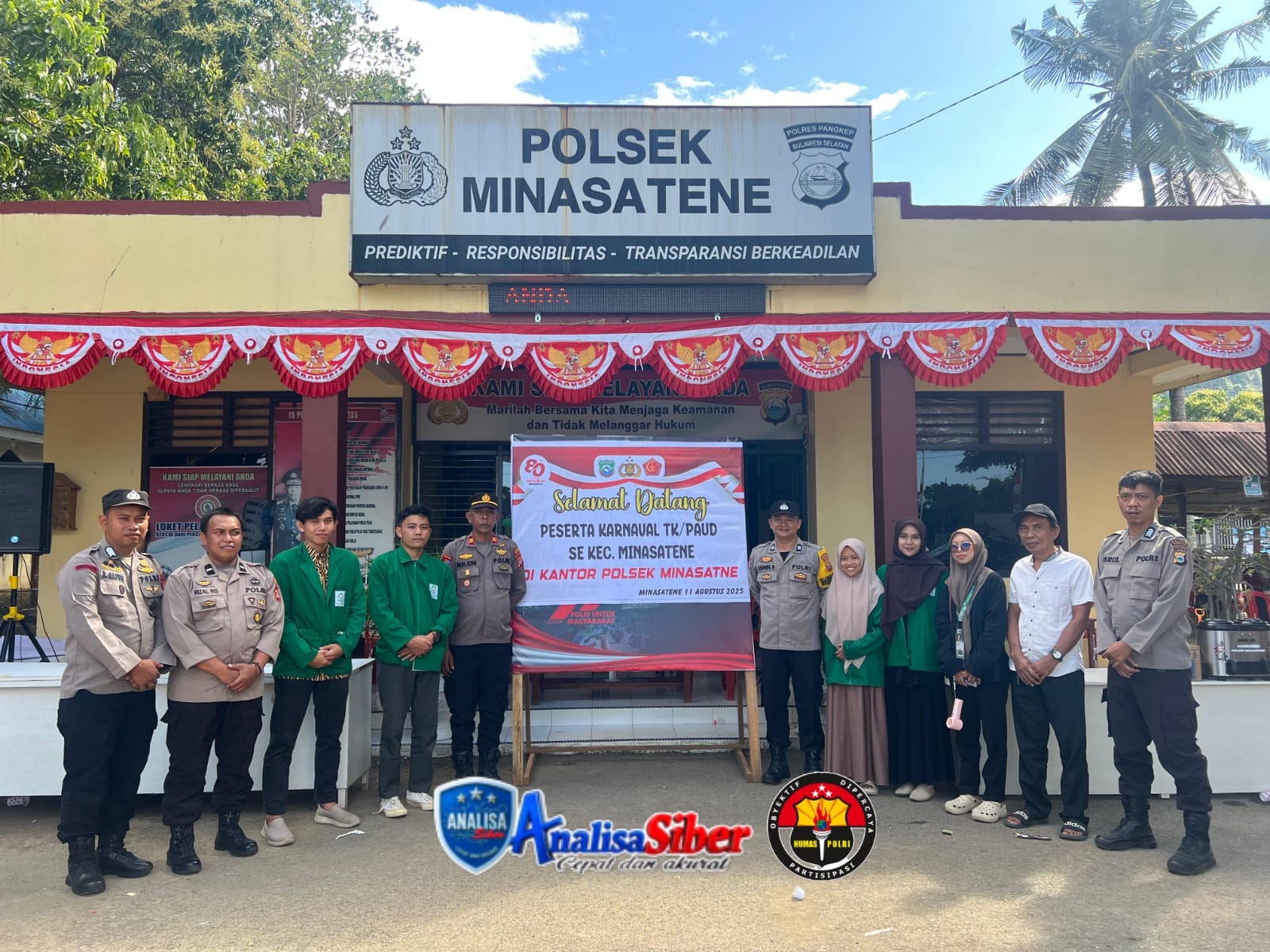 ANALISASIBER.COM. Minasatene, Senin, 11 Agustus 2025 – Bertempat di halaman Kantor Polsek Minasatene, telah berlangsung kegiatan karnaval yang diikuti oleh seluruh TK/PAUD se-Kecamatan Minasatene. Dalam kegiatan ini, Polsek Minasatene bekerja sama dengan adik-adik mahasiswa Kuliah Kerja Nyata (KKN) dari UIN Makassar yang sedang menjalankan tugas pengabdiannya di wilayah Kecamatan Minasatene.