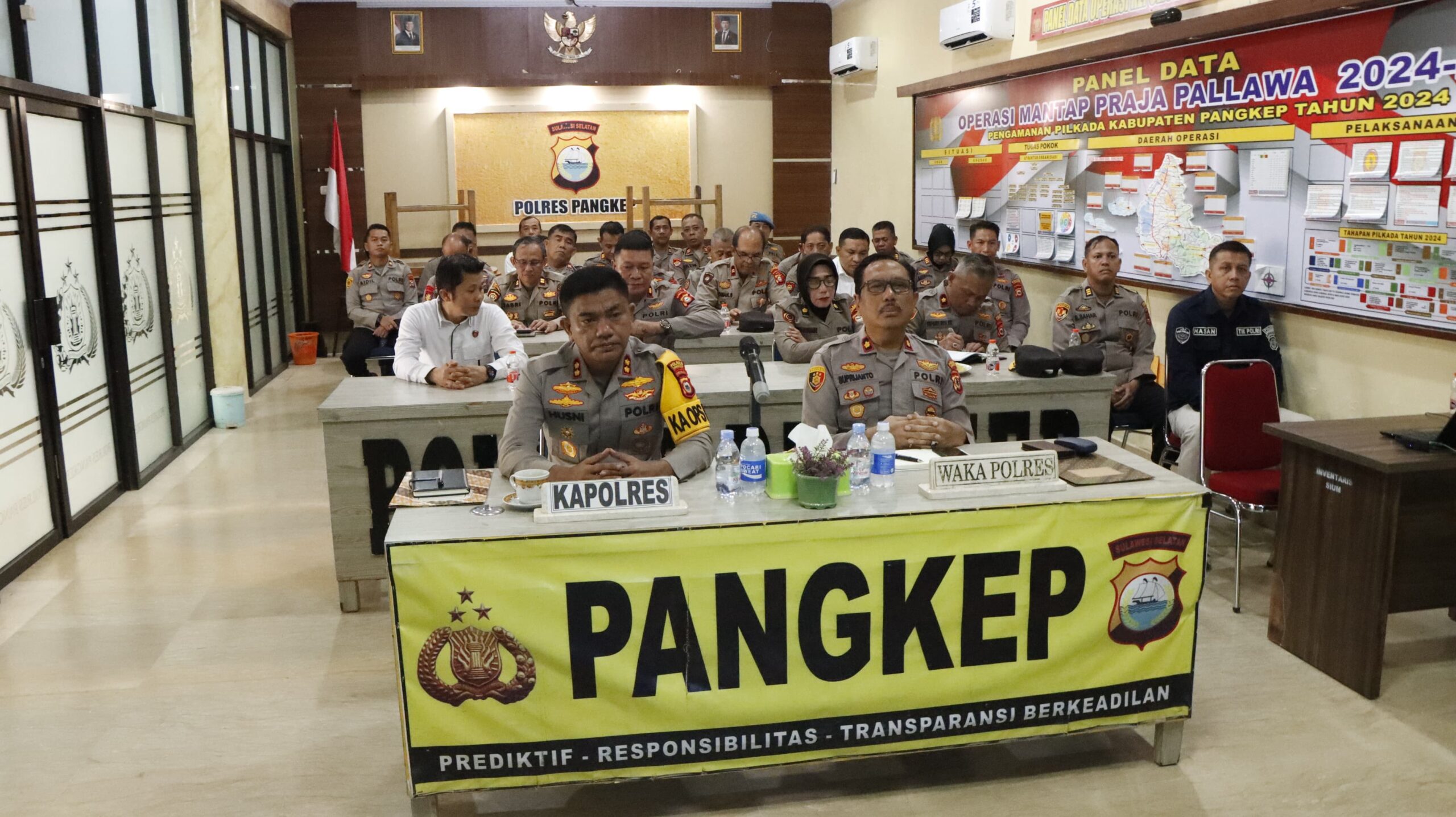 Hadir secara langsung di Aula Andi Mappe Polres Pangkep antara lain Wakapolres Pangkep Kompol Sugeng Suprijanto, S.Pd., M.Pd., para Kabag, Kasat, Kapolsek jajaran, serta para Kasi Polres Pangkep.