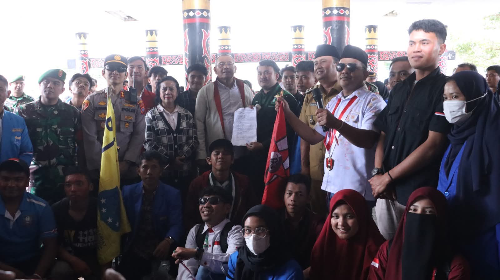Sidikalang (Sumut), analisasiber.com – Bupati Dairi, Vickner Sinaga, besama Wakil Bupati Dairi, Wahyu Daniel Sagala, dan Sekda, Charles Bantjin menemui Aliansi Pemuda dan Mahasiswa Dairi yang menamakan diri ‘Dairi Darurat Kesehatan Sosial’ yang menggelar aksi unjuk rasa, Selasa (02/09/25) di depan Kantor Bupati Dairi.