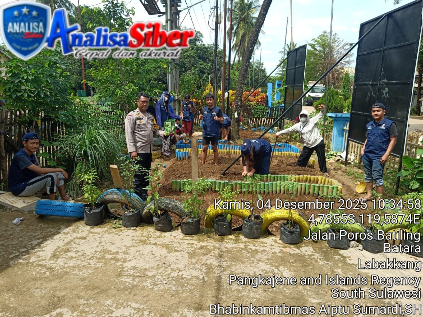Labakkang… Bhabinkamtibmas Desa Batara, Kecamatan Labakkang, Kabupaten Pangkep, Aiptu Sumardi, S.H., melakukan kolaborasi dengan mahasiswa KKN Universitas Bosowa Maros dalam kegiatan penanaman sayuran di Kebun Desa Batara. Kamis , 04 Desember 2025.