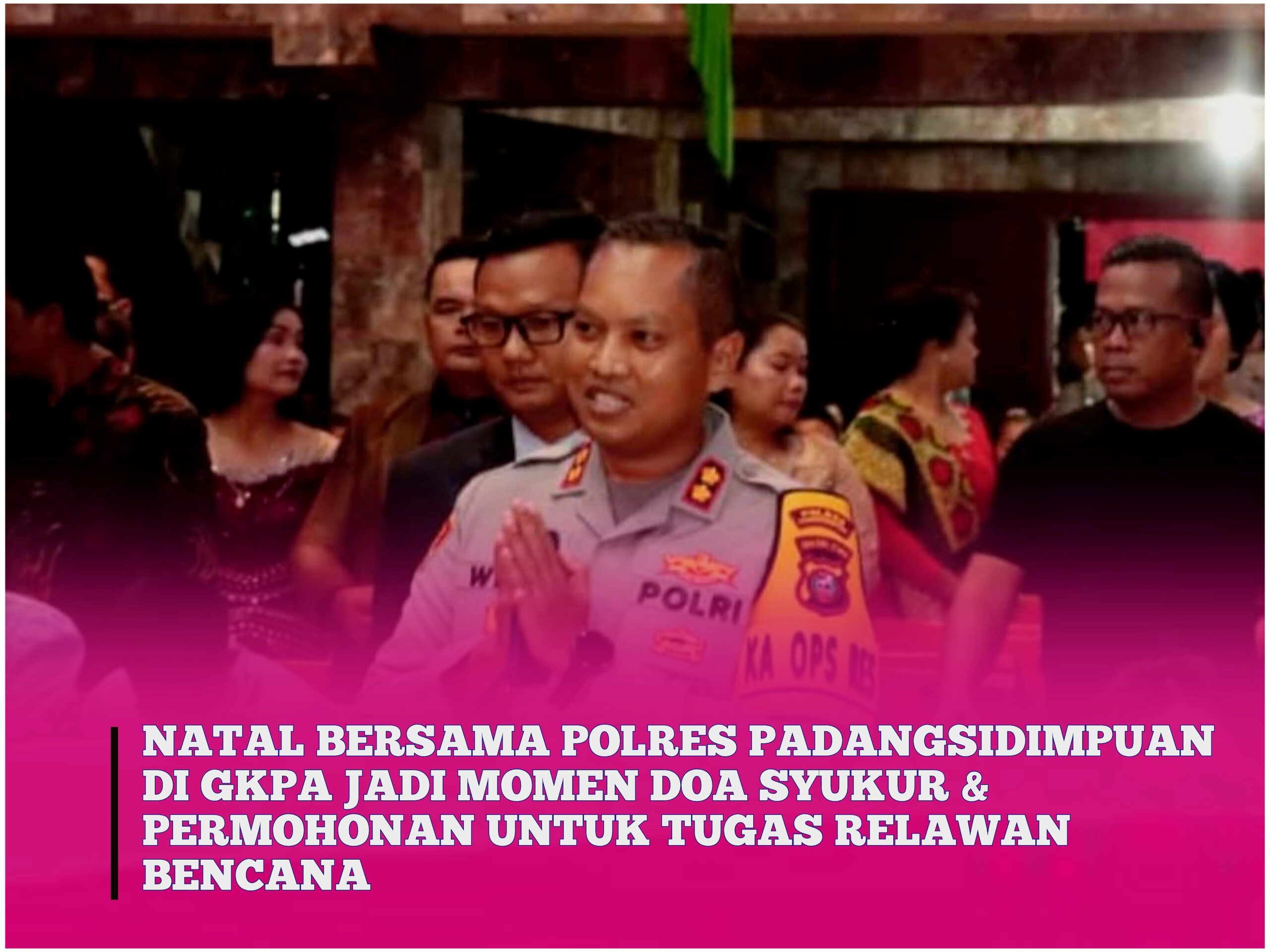 Padangsidimpuan, Sumut: analisasiber.com, – Keluarga Besar Polres Padangsidimpuan menggelar Perayaan Natal yang khidmat dan penuh sukacita di Gereja Kristen Protestan Angkola (GKPA) Padangsidimpuan, pada Sabtu (06/12/2025) malam. Perayaan ini mengangkat tema utama “Allah hadir untuk menyelamatkan manusia” (Matius 1 : 21-24), dengan sub tema yang memotivasi, yakni “sukacita kelahiran Yesus Kristus memotivasi Polri dalam melayani masyarakat untuk Indonesia Maju.”