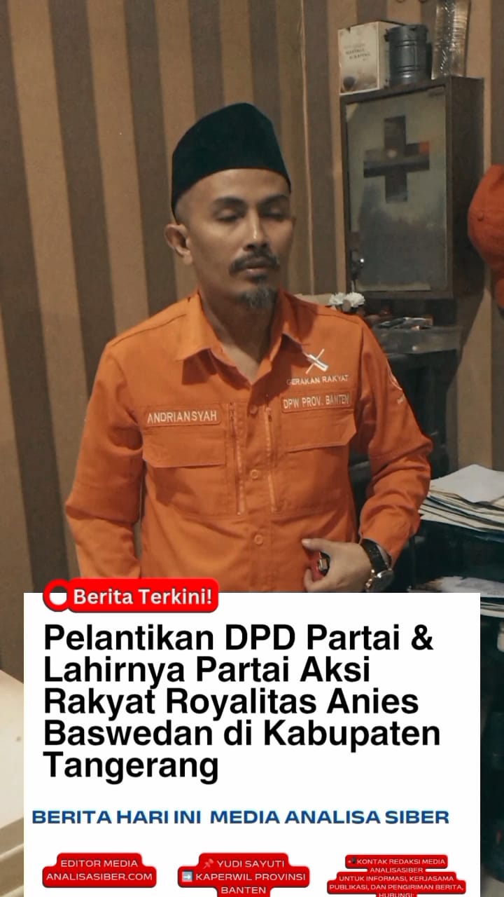 Tangerang, Analisasiber.com – Partai Aksi Rakyat (PAR) yang baru saja dideklarasikan oleh Anies Baswedan kini resmi membentuk Dewan Pimpinan Daerah (DPD) Kabupaten Tangerang. Acara pelantikan tersebut dihadiri oleh Ketua DPW beserta jajaran pengurus Partai Aksi Rakyat, Senin (08/09/2025).