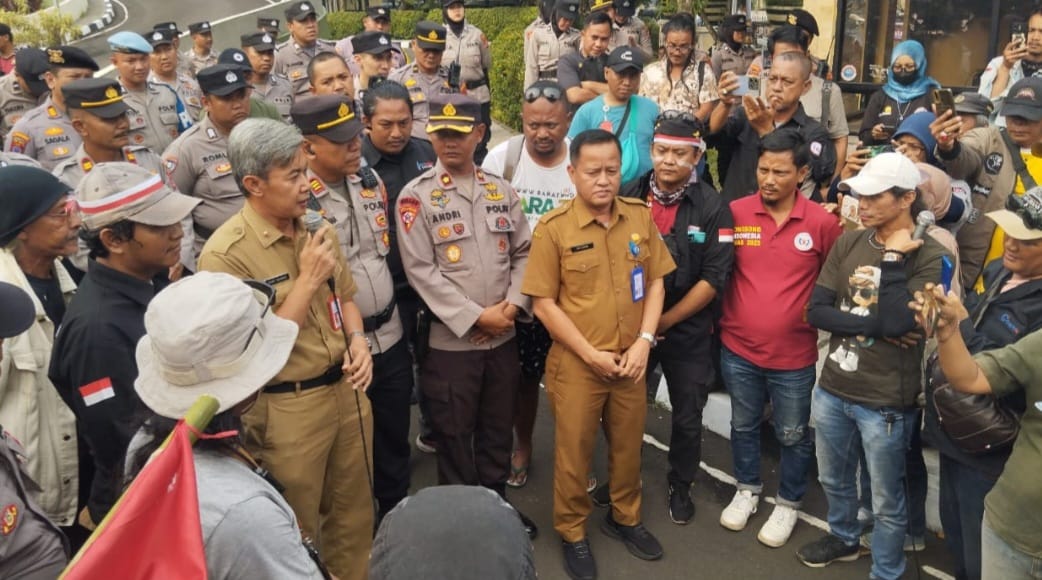 “Jika tidak ada tanggapan, kami akan menduduki kantor Pemkab dan memblokade pintu masuk hingga tuntutan kami dipenuhi,” tegas Opan saat aksi berlangsung.