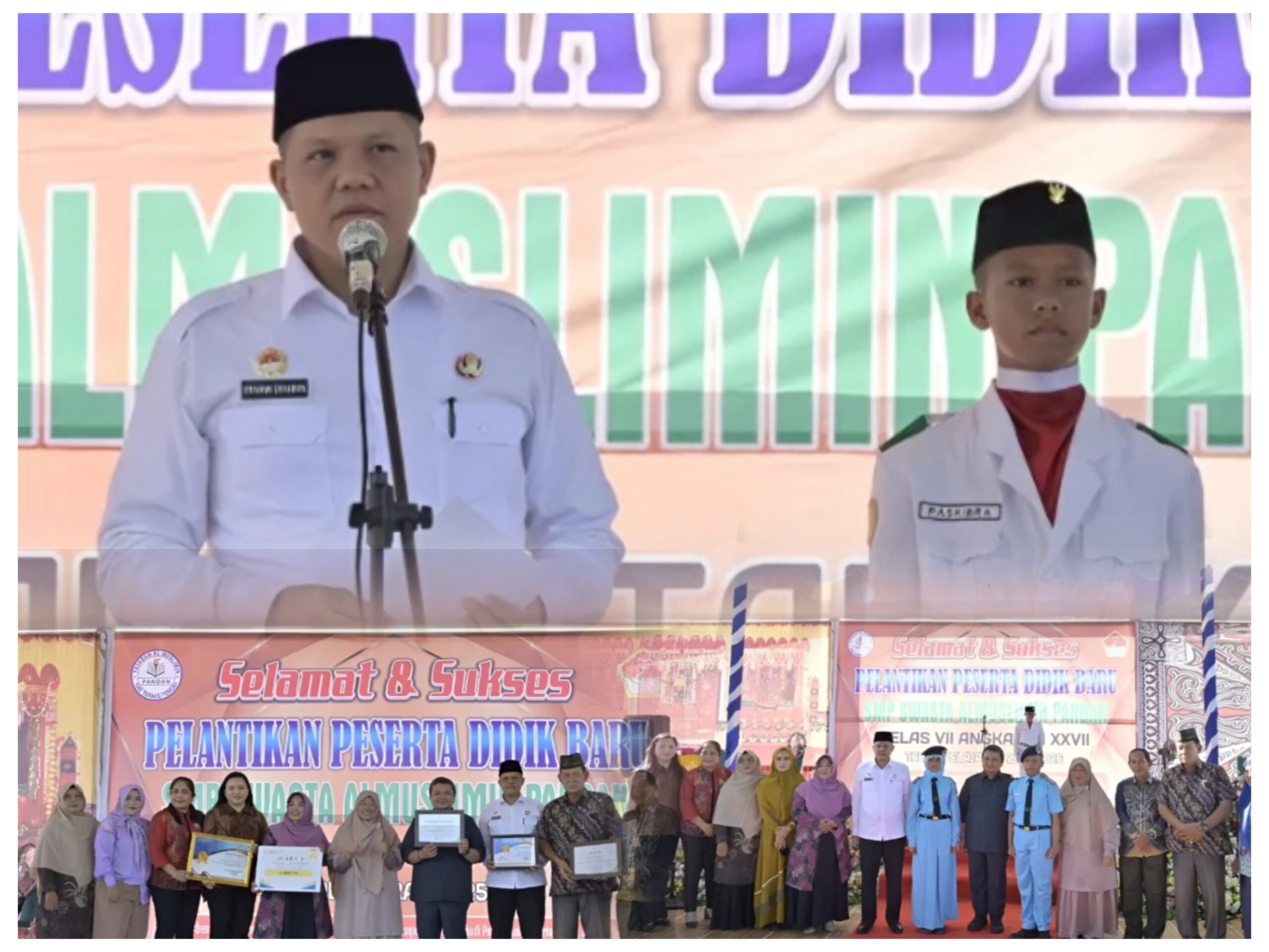 Pandan, Tapteng : analisasiber.com, – Plt. Asisten Pemerintahan dan Kesra Sekretariat Daerah Kabupaten (Setdakab) Tapanuli Tengah (Tapteng) Erman Syahrin Lubis, S.Sos, M.AP, menghadiri acara Pelantikan Siswa Siswi Baru SMP Swasta Al-Muslimin Pandan Angkatan XXVII Tahun Pelajaran 2025-2026, bertempat di Sekolah Al- Muslimin Pandan, Kabupaten Tapanuli Tengah, Sabtu (09/08/2025).