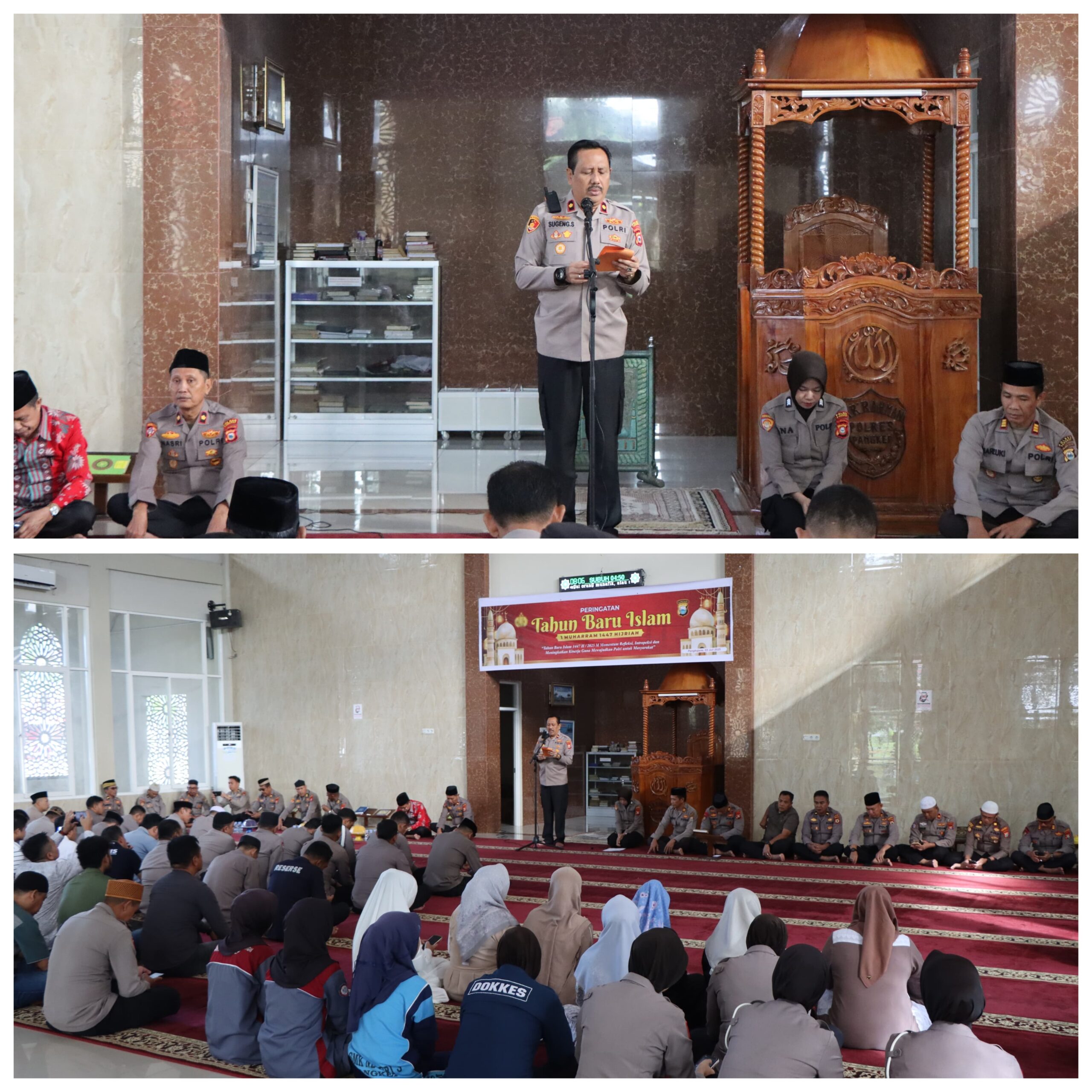 “Kita jadikan momentum 1 Muharram ini sebagai ajang muhasabah, untuk melihat kembali apa yang telah kita perbuat selama ini, sekaligus menata niat dan semangat baru guna meningkatkan kinerja dan pelayanan kita kepada masyarakat,” ungkap Wakapolres.