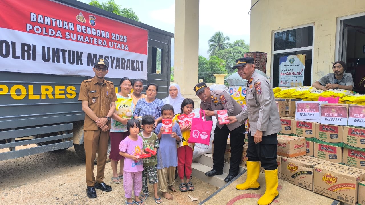SIBOLGA, SUMUT – Polres Sibolga melaksanakan pendistribusian Bantuan Sosial (Bansos) kepada masyarakat yang terdampak bencana alam tanah longsor di wilayah Kota Sibolga, pada *Selasa, 09 Desember 2025* sekitar pukul *16.00 WIB hingga selesai*. Bantuan ini merupakan wujud kepedulian dari *Kapolri Jenderal Polisi Drs. Listyo Sigit Prabowo, M.Si dan Ibu Ketua Umum Bhayangkari Ny. Juliati Sigit Prabowo*, serta *Kapolda Sumut Irjen Pol Whisnu Hermawan Februanto, S.I.K., M.H bersama Ibu Ketua Bhayangkari Daerah Sumut Ny. Mona Whisnu*.