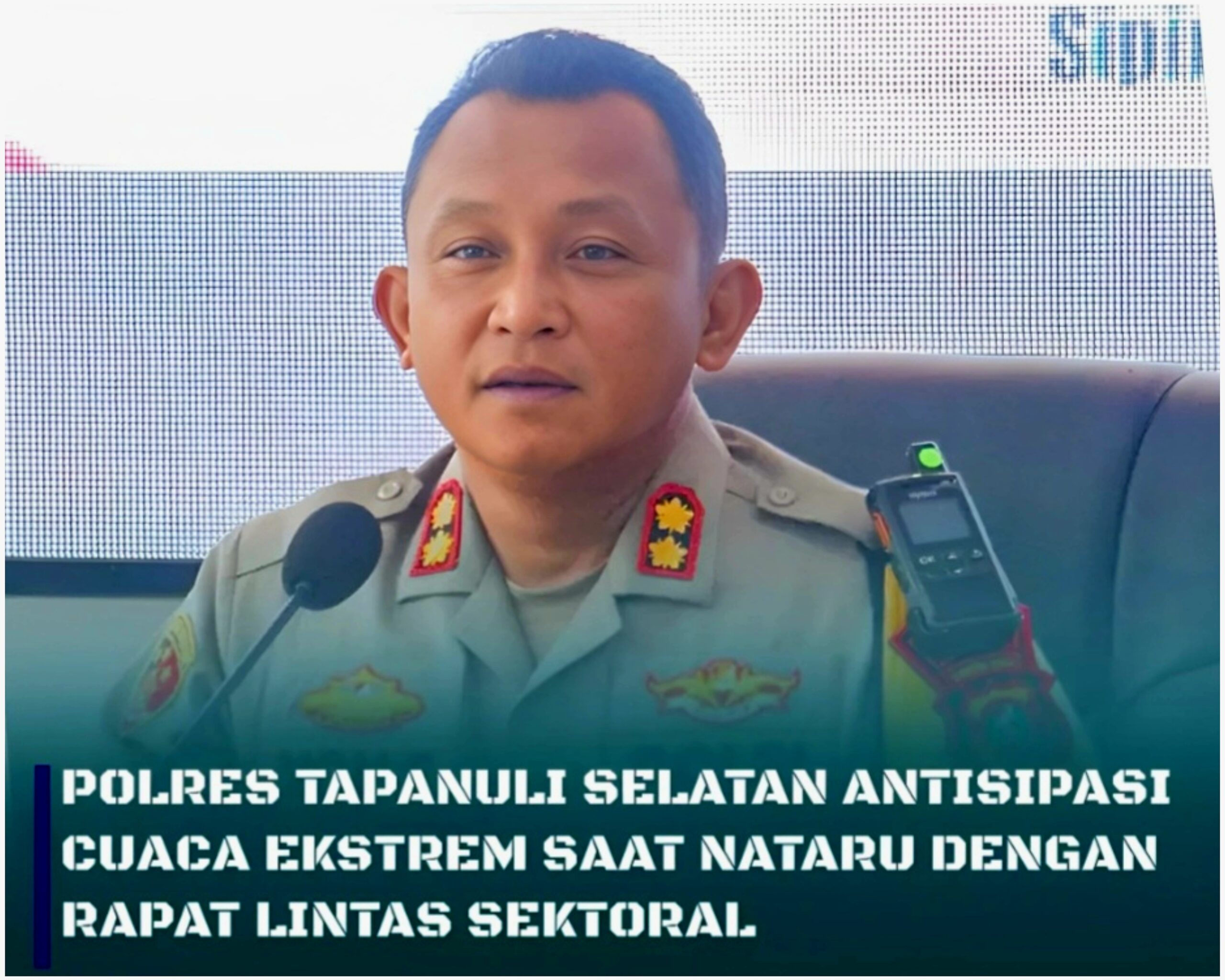 Pengamanan Nataru tidak hanya berfokus pada kelancaran arus lalu lintas dan aktivitas ibadah, tetapi juga pada upaya meminimalisir risiko akihat adanya potensi cuaca ekstrem, sehingga keselamatan masyarakat menjadi prioritas utama Polres Tapanuli Selatan telah mempersiapkan diri untuk menghadapi potensi bencana tersebut dengan melakukan koordinasi lintas sektoral dan meningkatkan sinergi dengan pemerintah dan masyarakat,” ujar Kapolres