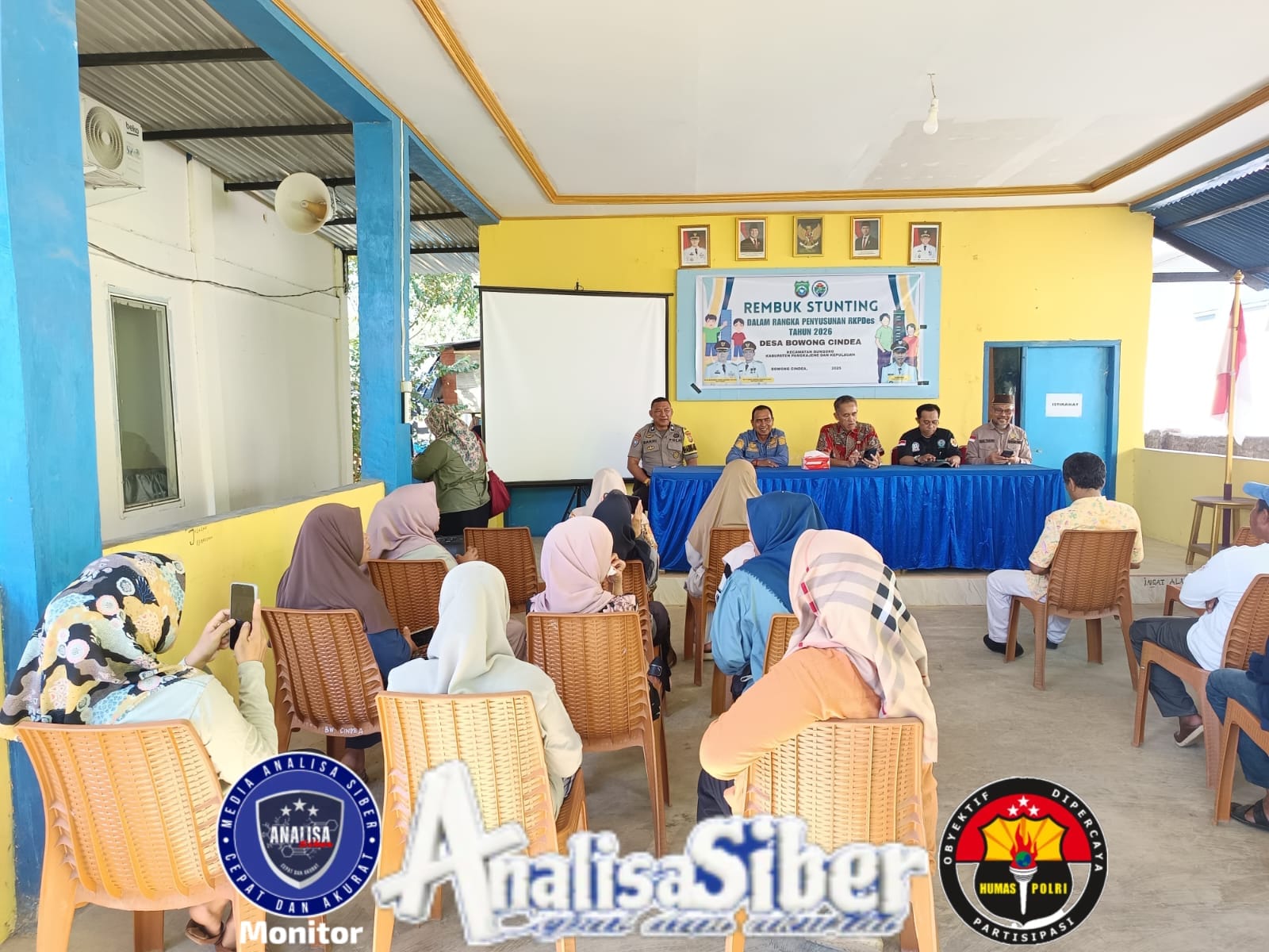 ANALISASIBER.COM. Pangkep – Dalam rangka mendukung program Desa Binaan dan meningkatkan sinergi lintas sektor dalam penanggulangan stunting, Bhabinkamtibmas Polsek Bungoro Aiptu Bakri, S.H., menghadiri kegiatan Rembuk Stunting yang digelar di Kantor Desa Bowong Cindea, Kecamatan Bungoro, Kabupaten Pangkep, pada Kamis, 24 Juli 2025.