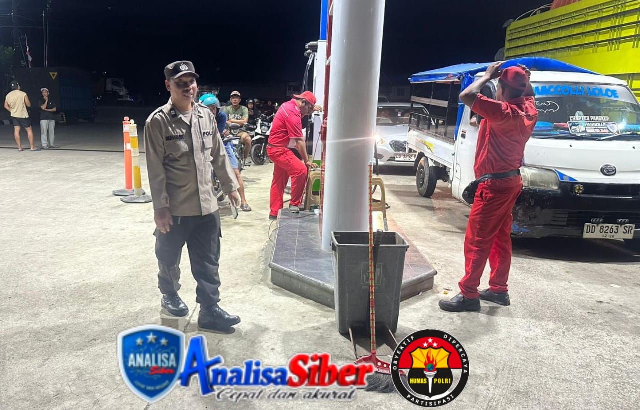 ANALISASIBER.COM. Pangkep – Personel Polsek Ma’rang kembali melaksanakan patroli malam pada Sabtu (30/8/2025) malam. Dalam kegiatan tersebut, petugas singgah di Stasiun Pengisian Bahan Bakar Umum (SPBU) Laikang, Kelurahan Talaka, Kecamatan Ma’rang, Kabupaten Pangkep, untuk berdialog bersama warga dan petugas SPBU.
