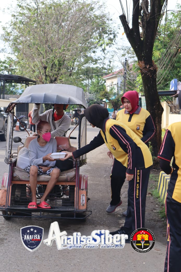ANALISASIBER.COM. Pangkep – Dalam rangka menumbuhkan semangat kepedulian sosial dan berbagi terhadap sesama, Personel Polisi Wanita (Polwan) Polres Pangkep menggelar kegiatan Jumat Berkah dengan membagikan nasi bungkus kepada masyarakat yang melintas di sekitaran Mako Polres Pangkep, Jumat pagi (11/07/2025).