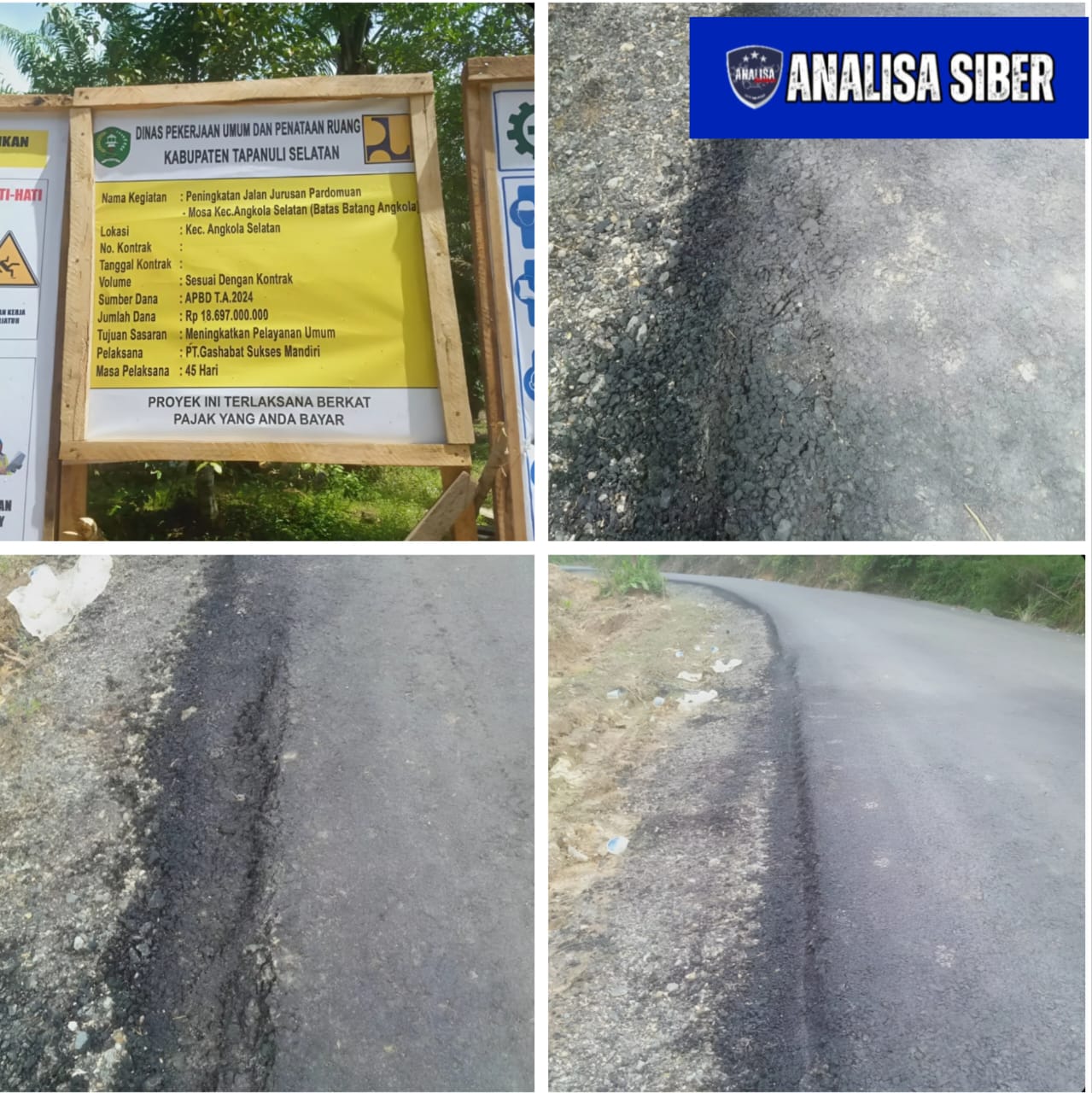 Inilah proyek pengerjaan milik Dinas Pekerjaan Umum dan Penataan Ruang (PUPR) Kabupaten Tapanuli Selatan (tapsel) yang dimenangkan oleh PT. Gashabat Sukses Mandiri Dengan senilai Rp 18.697.000.000,00 papan informasi pada paket pekerjaan Jalan Jurusan Pardomuan Mosa Kecamatan Angkola Selatan Dinas Pekerjaan Umum dan Penataan Ruang Daerah Kabupaten Tapanuli Selatan hanya memuat jumlah anggaran tidak memuat Nomor Kontrak Tanggal Kontrak volume seperti panjang lebar dan ketebalan fisik proyek yang sedang dikerjakan pihak rekanan. terindikasi jadi ajang korupsi.