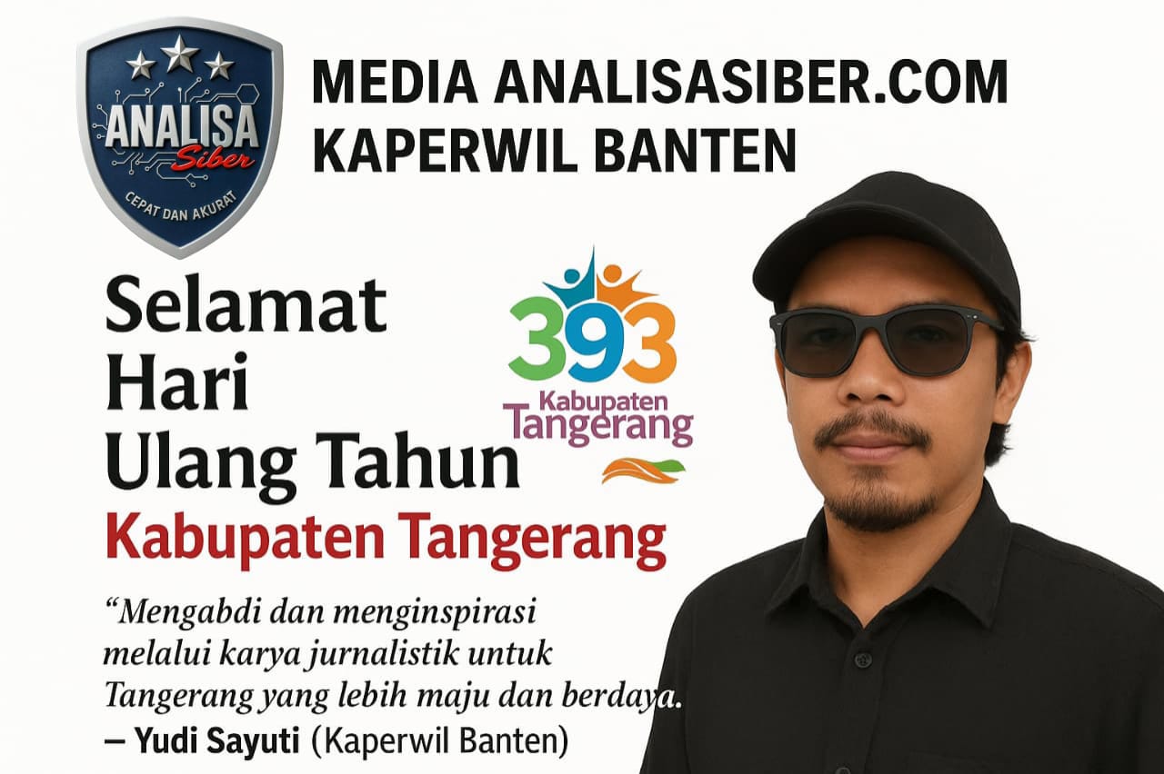 TANGERANG | ANALISASIBER.COM — Dalam rangka memperingati Hari Ulang Tahun Kabupaten Tangerang ke-393, Redaksi Media Analisasiber.com melalui Kepala Perwakilan (Kaperwil) Banten, Yudi Sayuti, turut menyampaikan ucapan selamat dan doa terbaik bagi kemajuan Kabupaten Tangerang.