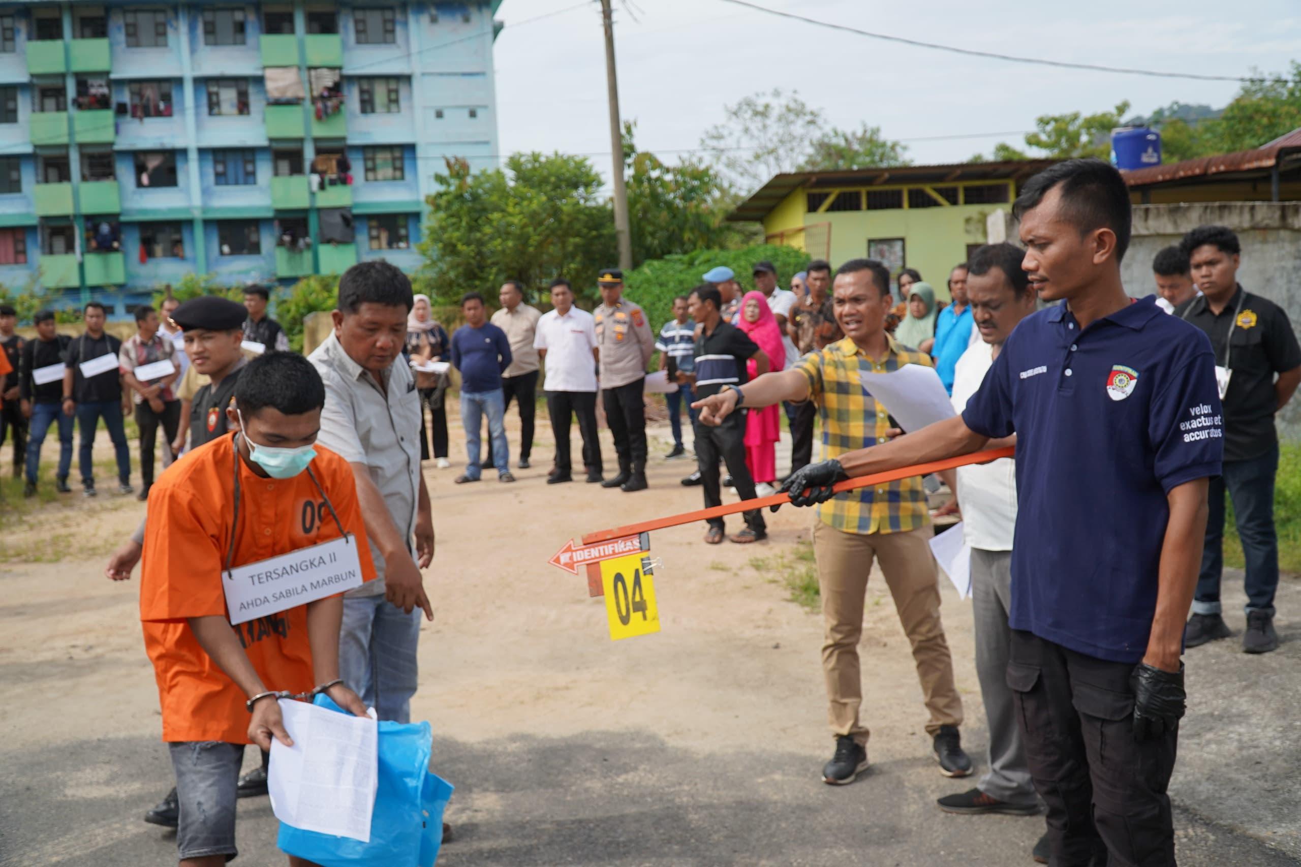 “Rekonstruksi hari ini telah dilaksanakan dengan aman dan lancar. Kami menghadirkan dua tersangka yang sudah ditahan, AWS dan ASM. Sementara itu, 18 pelaku lainnya masih berstatus Daftar Pencarian Orang (DPO) dan terus kami buru. Rekonstruksi ini vital untuk melengkapi berkas perkara sebelum dilimpahkan ke Kejaksaan,” tegas AKP M Taufik Siregar.