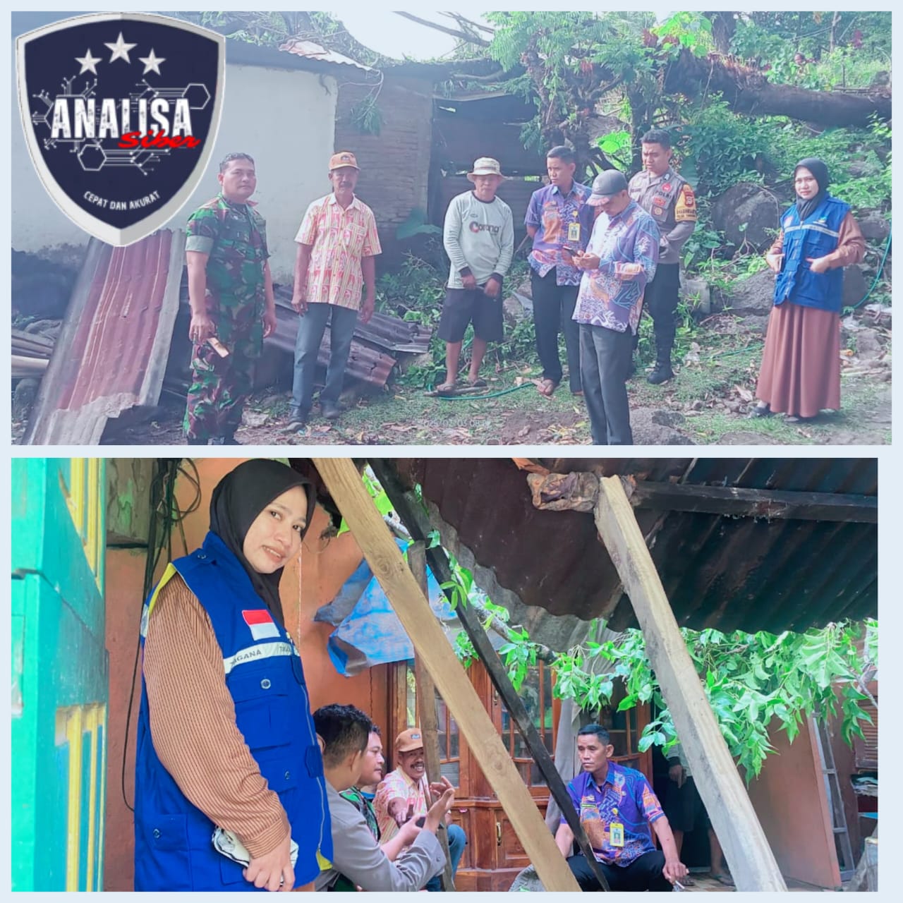 Kerusakan yang terjadi Atap rumah bagian belakang rusak parah (roboh)