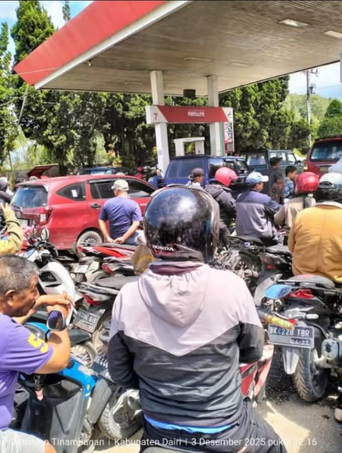 Sidikalang, Dairi (Sumut), analisasiber.com – Pasca bencana alam banjir bandang dan longsor terjadi di Tapanuli Tengah, Tapanuli Utara, Tapanuli Selatan, Sibolga,humbang Hasundutan, Pakpak Bharat dan Aceh, menyebabkan terjadi antrean bahan bakar minyak (BBM) di sejumlah Stasiun Pengisian Bahan Bakar Umum di Kota Sidikalang, lebih dari sepekan terakhir.