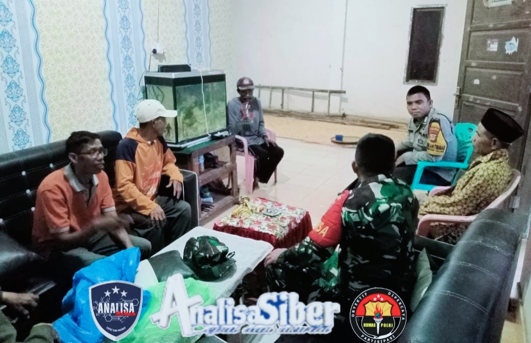 Bhabinkamtibmas bersama Babinsa serta warga yang sudah melakukan pencarian langsung mendatangi rumah yang dilporkan hilang untuk memastikan kebenaranya bahwa sudah ditemukan.