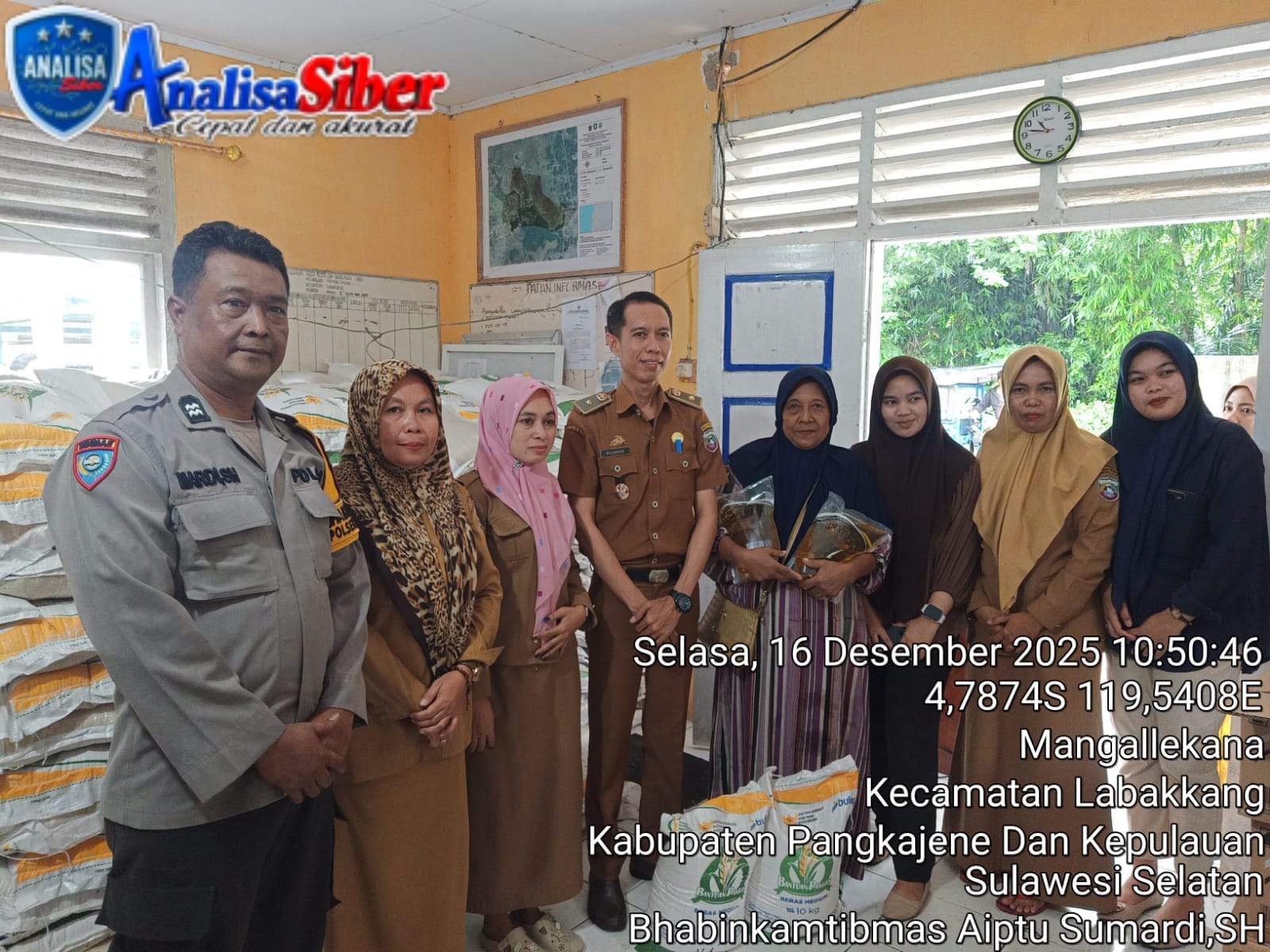 Labakkang… Bhabinkamtibmas Kelurahan Mangallekana, Aiptu Sumardi, S.H., bersinergi dengan Kepala Kelurahan Mangallekana, Muzakkir, dalam pelaksanaan penyaluran Program Bantuan Pangan Tahun Anggaran 2025. Kegiatan ini dilaksanakan pada periode Oktober–November 2025 di wilayah Kelurahan Mangallekana, Kecamatan Labakkang, Kabupaten Pangkep. Selasa, 16 Desember 2025.