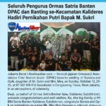 Tag: Seluruh Pengurus Ormas Satria Banten DPAC dan Ranting se-Kecamatan Kalideres Hadiri Pernikahan Putri Bapak M. Sukri