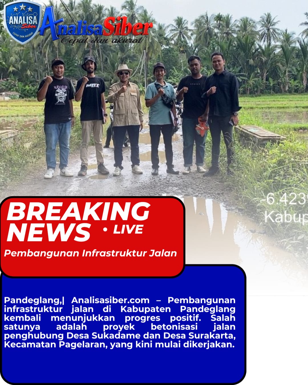 Pandeglang – Analisasiber.com – Pembangunan infrastruktur jalan di Kabupaten Pandeglang kembali menunjukkan progres positif. Salah satunya adalah proyek betonisasi jalan penghubung Desa Sukadame dan Desa Surakarta, Kecamatan Pagelaran, yang kini mulai dikerjakan.