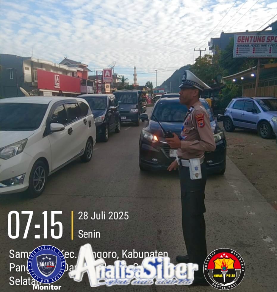 ANALISASIBER.COM. Pangkep – Dalam rangka meningkatkan kualitas pelayanan kepada masyarakat, Polsek Bungoro secara rutin menggelar strong poin pagi dengan melakukan pengaturan lalu lintas, Kegiatan ini dilakukan di bawah kendali Panit Satu Lalu Lintas Polsek Bungoro, Ipda Supardan Pada Senin, 28/07/25