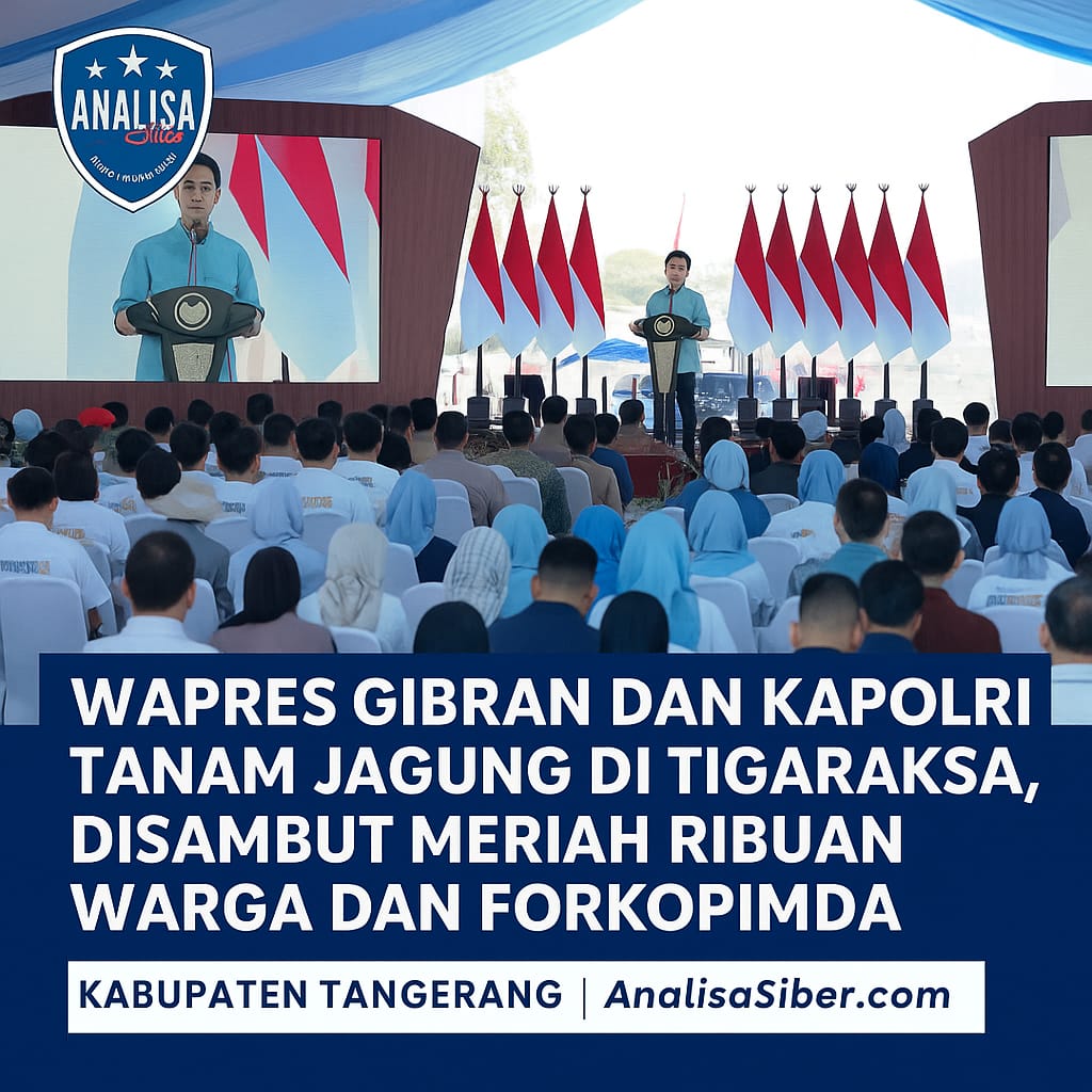 KABUPATEN TANGERANG, Tigaraksa | AnalisaSiber.com – Wakil Presiden Republik Indonesia Gibran Rakabuming Raka bersama Kapolri Jenderal Listyo Sigit Prabowo melakukan kunjungan kerja ke Kabupaten Tangerang dalam rangka penanaman jagung hibrida serentak Kuartal IV Tahun 2025, di Kampung Cileles, Desa Bantar Panjang, Kecamatan Tigaraksa, Rabu (08/10/2025).